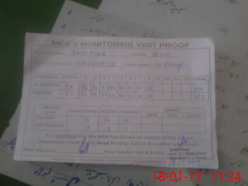 | Attendance Register | Head Teacher | MEA with School | Visit Proof |
