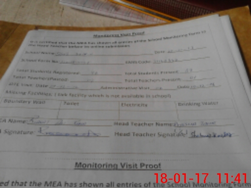 | Attendance Register | Head Teacher | MEA with School | Visit Proof |
