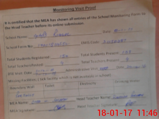 | Attendance Register | Head Teacher | MEA with School | Visit Proof |