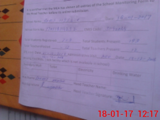 | Attendance Register | Head Teacher | MEA with School | Visit Proof |