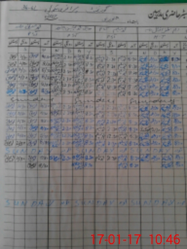 | CNIC | Full Name | Designation | R/C | Absence During Last Calender Month |