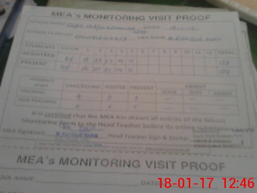 | Attendance Register | Head Teacher | MEA with School | Visit Proof |