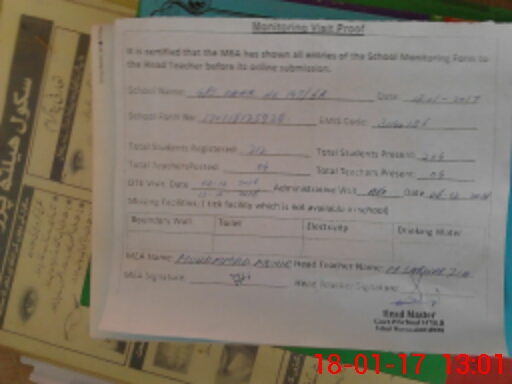 | Certified that this School was Inspected by the Undersigned MEA/DMO Today and the Information Stated Above is as Per Record. | |||||