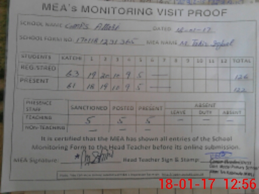 | Attendance Register | Head Teacher | MEA with School | Visit Proof |