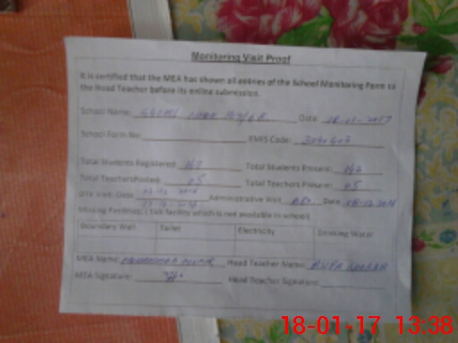| Certified that this School was Inspected by the Undersigned MEA/DMO Today and the Information Stated Above is as Per Record. | |||||