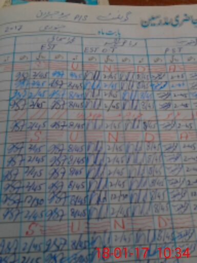 | CNIC | Full Name | Designation | R/C | Absence During Last Calender Month |