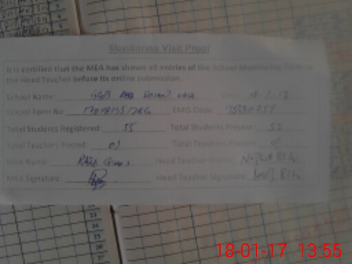 | Certified that this School was Inspected by the Undersigned MEA/DMO Today and the Information Stated Above is as Per Record. | |||||