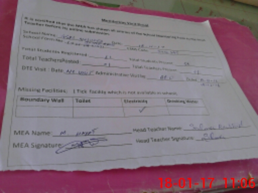| Attendance Register | Head Teacher | MEA with School | Visit Proof |
