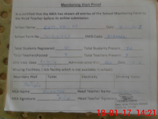 | Attendance Register | Head Teacher | MEA with School | Visit Proof |