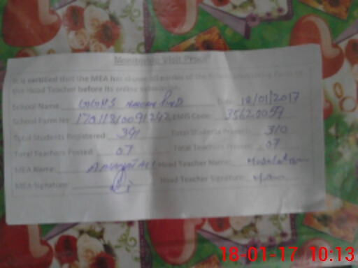 | Certified that this School was Inspected by the Undersigned MEA/DMO Today and the Information Stated Above is as Per Record. | |||||