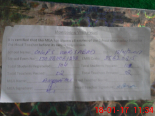 | Attendance Register | Head Teacher | MEA with School | Visit Proof |