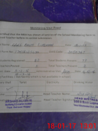 | EMIS Code: 31150367 | Name of School: GGES BASTI LUQMAN | |||