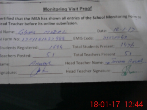 | Certified that this School was Inspected by the Undersigned MEA/DMO Today and the Information Stated Above is as Per Record. | |||||