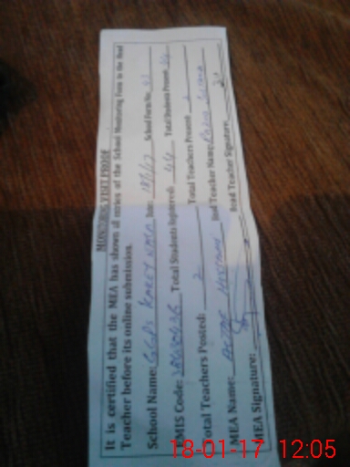 | Attendance Register | Head Teacher | MEA with School | Visit Proof |