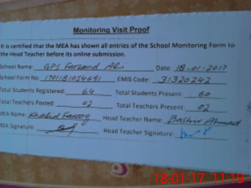 | EMIS Code: 31320242 | Name of School: GPS FARZAND ALI | |||