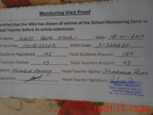| EMIS Code: 31320620 | Name of School: GGPS GOTH MAHI | |||