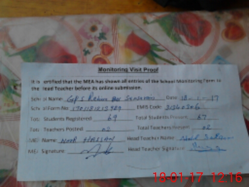 | EMIS Code: 31340306 | Name of School: GPS RAHIM BUX SANSARAIN | |||