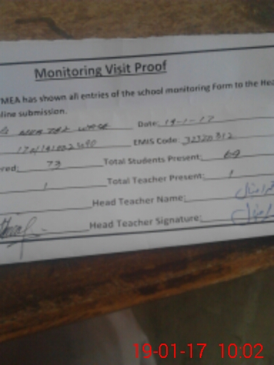 | Attendance Register | Head Teacher | MEA with School | Visit Proof |