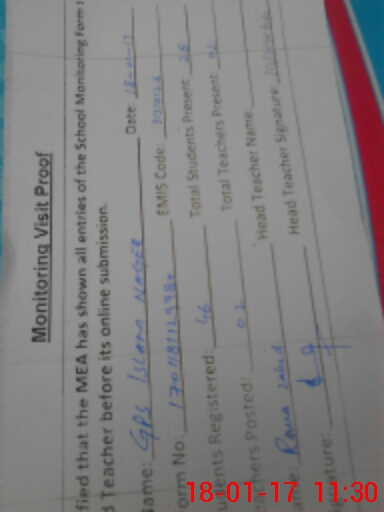 | EMIS Code: 31310126 | Name of School: GPS ISLAM NAGAR | |||