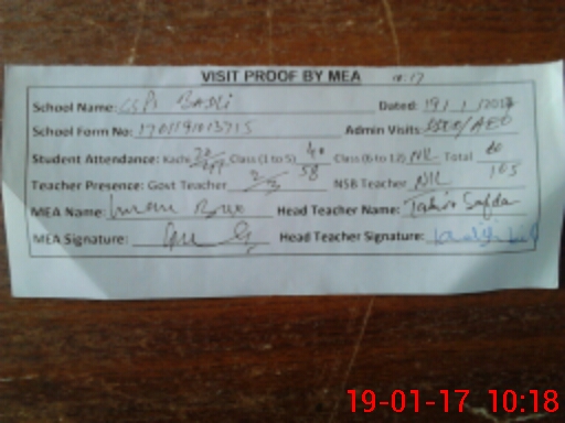 | Attendance Register | Head Teacher | MEA with School | Visit Proof |