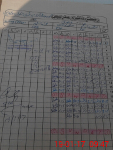 | CNIC | Full Name | Designation | R/C | Absence During Last Calender Month |