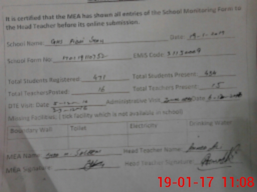| Certified that this School was Inspected by the Undersigned MEA/DMO Today and the Information Stated Above is as Per Record. | |||||