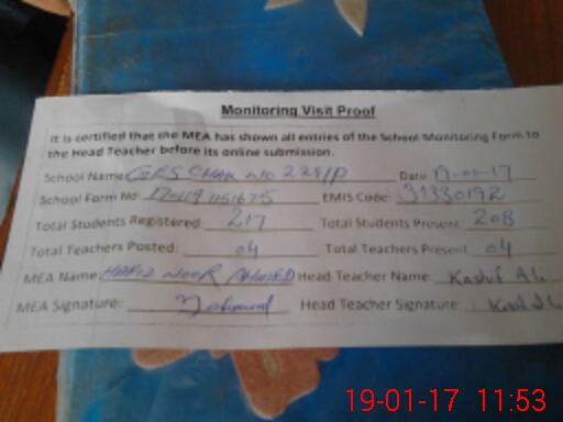 | EMIS Code: 31330192 | Name of School: GES CHAK NO. 229/P | |||