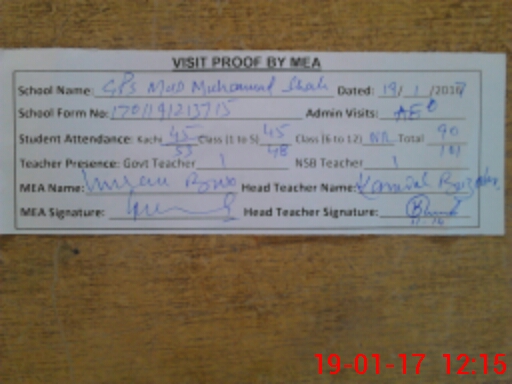 | EMIS Code: 32430131 | Name of School: GPS MUD MUHAMMAD SHAH | |||