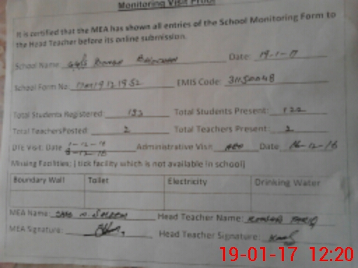 | EMIS Code: 31150048 | Name of School: GGPS BONGA BALOCHAAN | |||