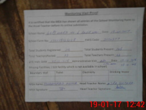 | EMIS Code: 31140377 | Name of School: GGPS WARD NO. 6 FAQIR WALI | |||
