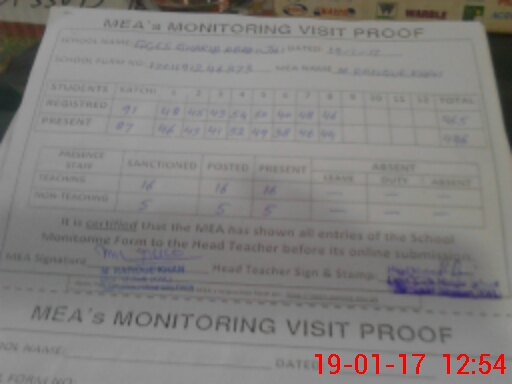 | Attendance Register | Head Teacher | MEA with School | Visit Proof |
