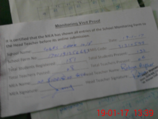 | Attendance Register | Head Teacher | MEA with School | Visit Proof |