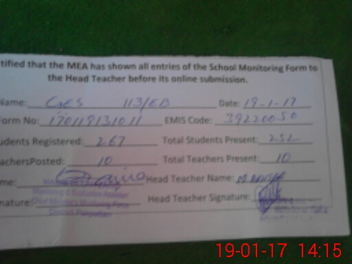 | Certified that this School was Inspected by the Undersigned MEA/DMO Today and the Information Stated Above is as Per Record. | |||||