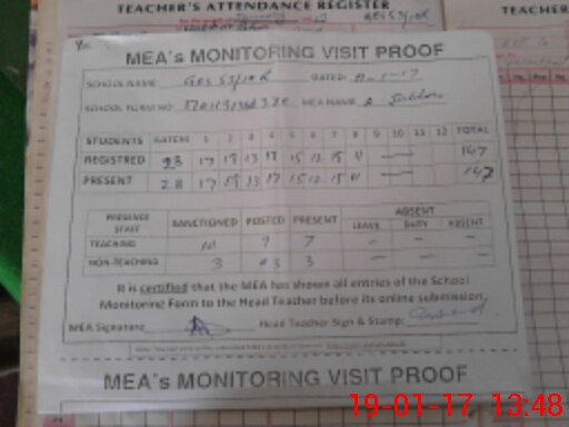 | Attendance Register | Head Teacher | MEA with School | Visit Proof |
