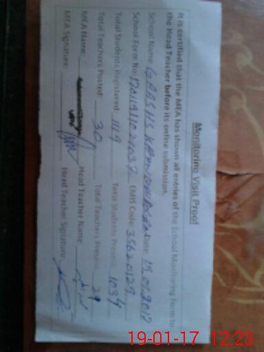 | Attendance Register | Head Teacher | MEA with School | Visit Proof |