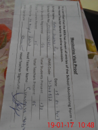 | Attendance Register | Head Teacher | MEA with School | Visit Proof |