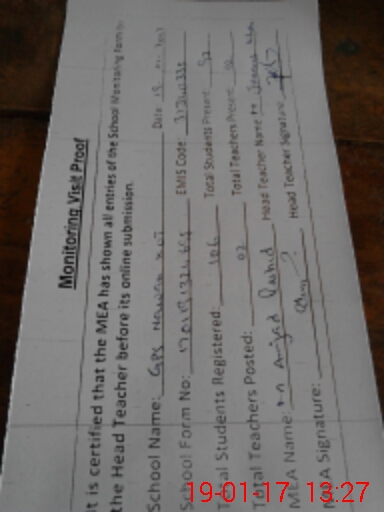 | Attendance Register | Head Teacher | MEA with School | Visit Proof |