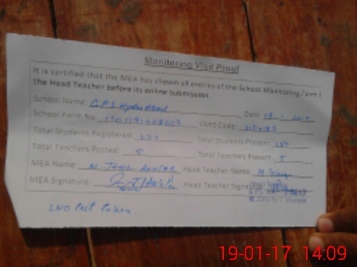 | EMIS Code: 31310183 | Name of School: GPS HYDERABAD | |||