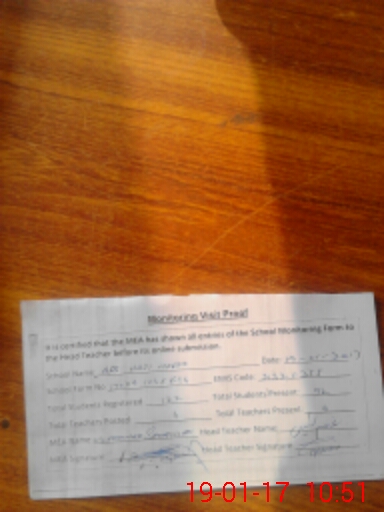 | Attendance Register | Head Teacher | MEA with School | Visit Proof |