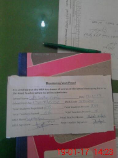| Attendance Register | Head Teacher | MEA with School | Visit Proof |