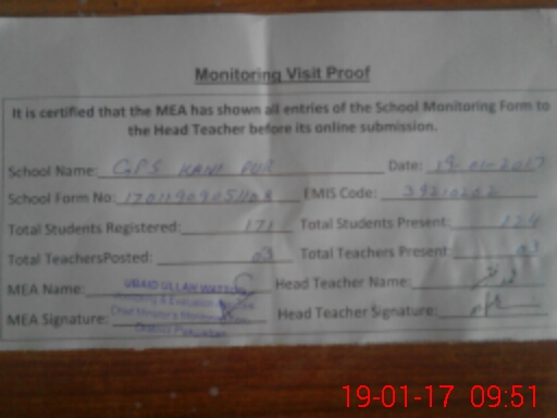 | EMIS Code: 39210202 | Name of School: GPS KANI PUR PO KUMAHARI WALA | |||