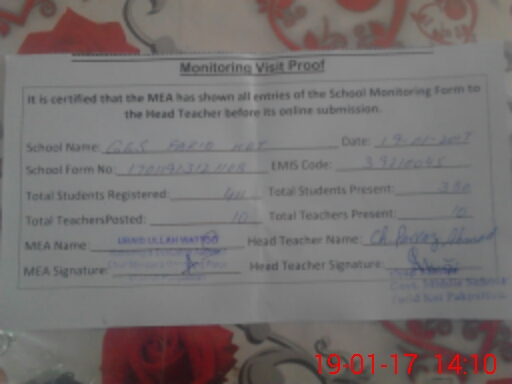 | EMIS Code: 39210045 | Name of School: GHS FARID KOT P/O PAKPATTAN | |||