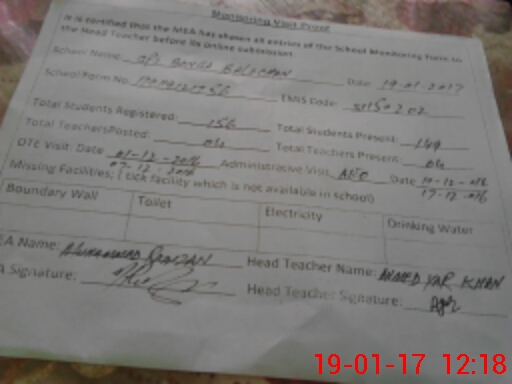 | EMIS Code: 31150202 | Name of School: GPS BONGA BALOCHAN | |||