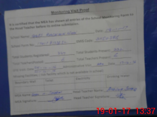 | Certified that this School was Inspected by the Undersigned MEA/DMO Today and the Information Stated Above is as Per Record. | |||||