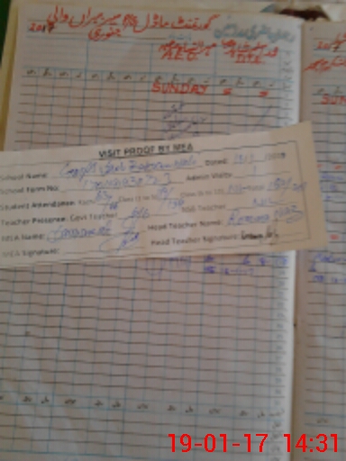 | Attendance Register | Head Teacher | MEA with School | Visit Proof |