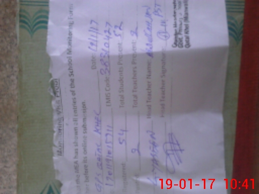 | School Visited by School Health & Nutrition Supervisor (No. of Visits) | 2 | Name1: | Anis FATIMA | Name2: | |