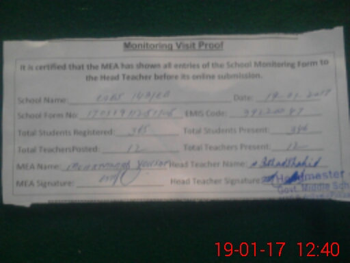 | Certified that this School was Inspected by the Undersigned MEA/DMO Today and the Information Stated Above is as Per Record. | |||||
