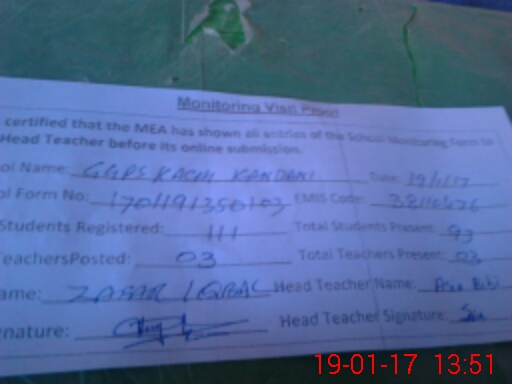 | Certified that this School was Inspected by the Undersigned MEA/DMO Today and the Information Stated Above is as Per Record. | |||||
