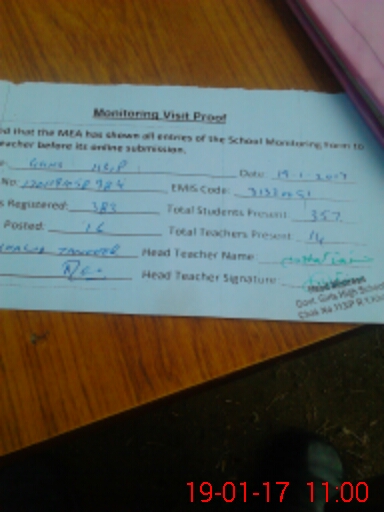 | Attendance Register | Head Teacher | MEA with School | Visit Proof |