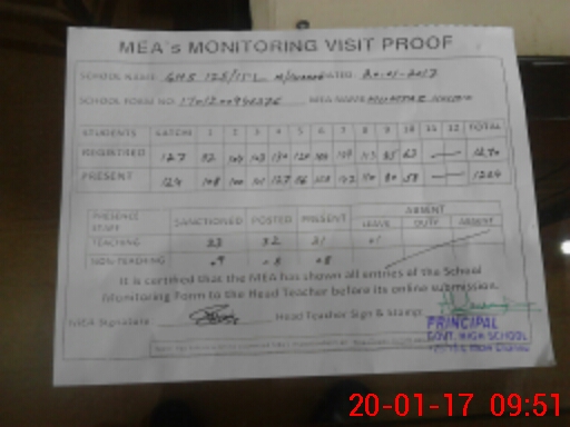 | Certified that this School was Inspected by the Undersigned MEA/DMO Today and the Information Stated Above is as Per Record. | |||||